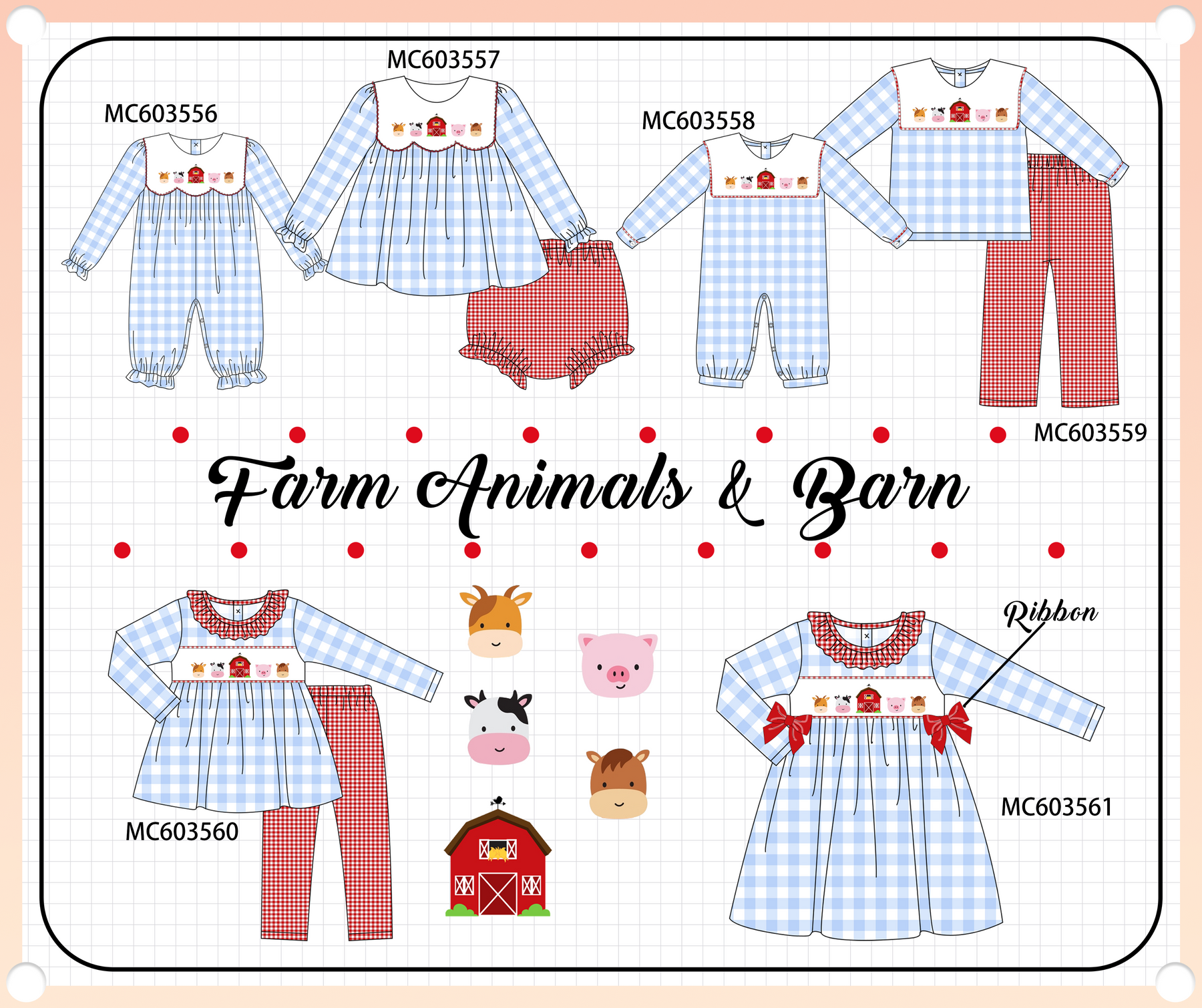 PO85 Blue farm embroidery gingham collection