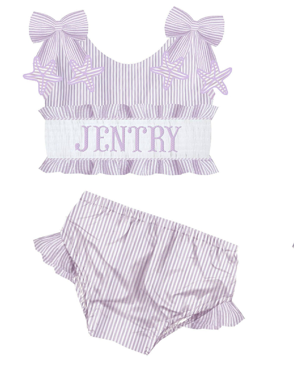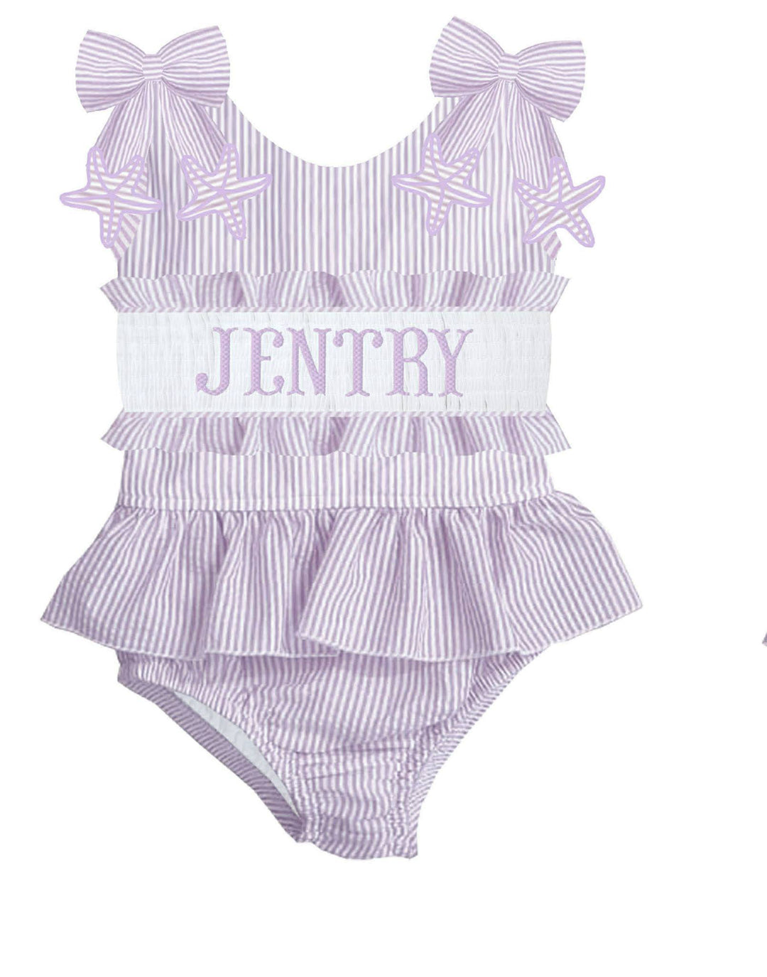 HAND SMOCKED PURPLE STARFISH SEERSUCKER SWIM PO