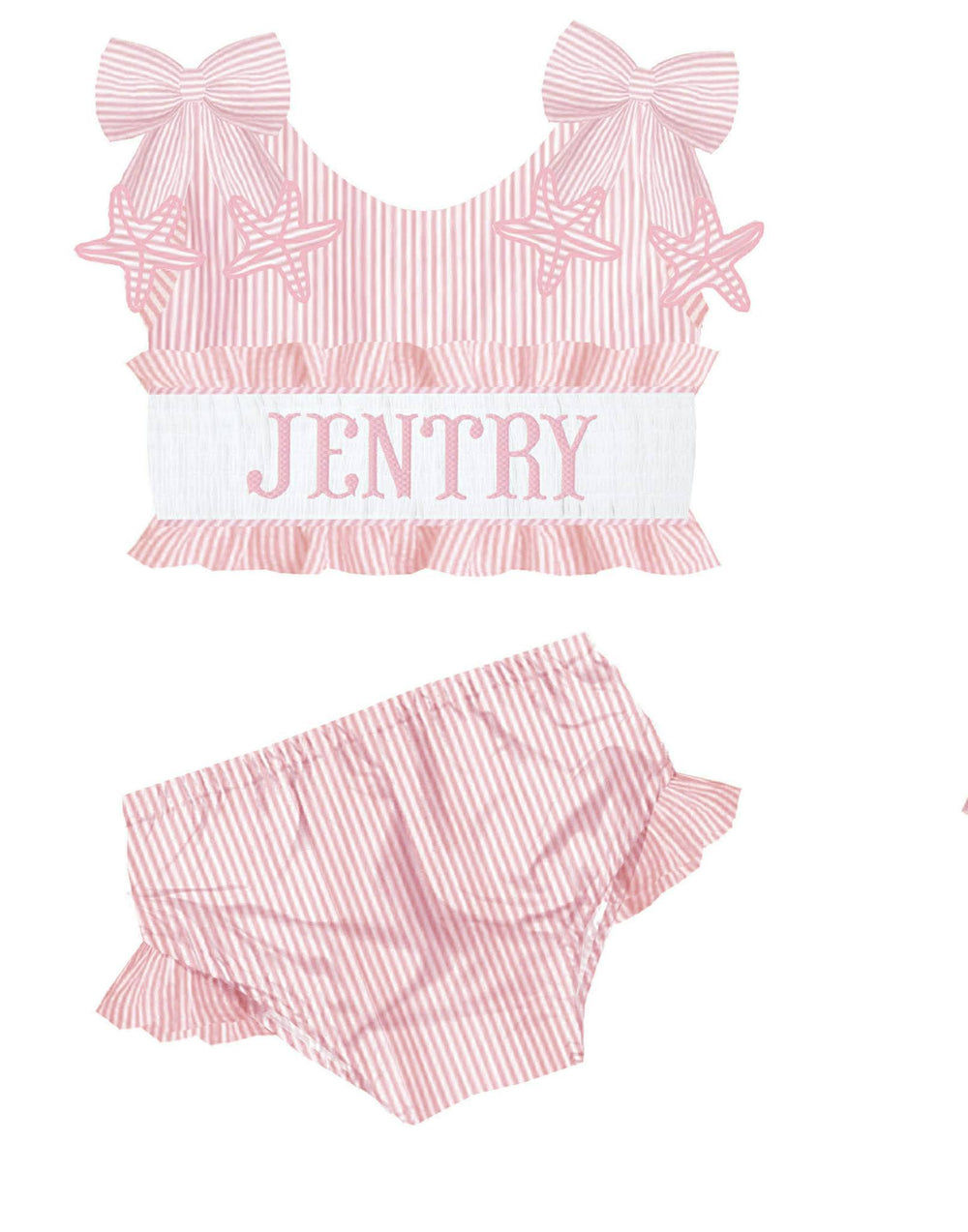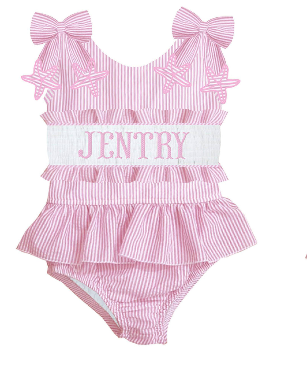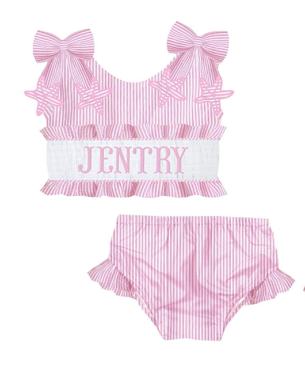 HAND SMOCKED PINK STARFISH SEERSUCKER SWIM PO