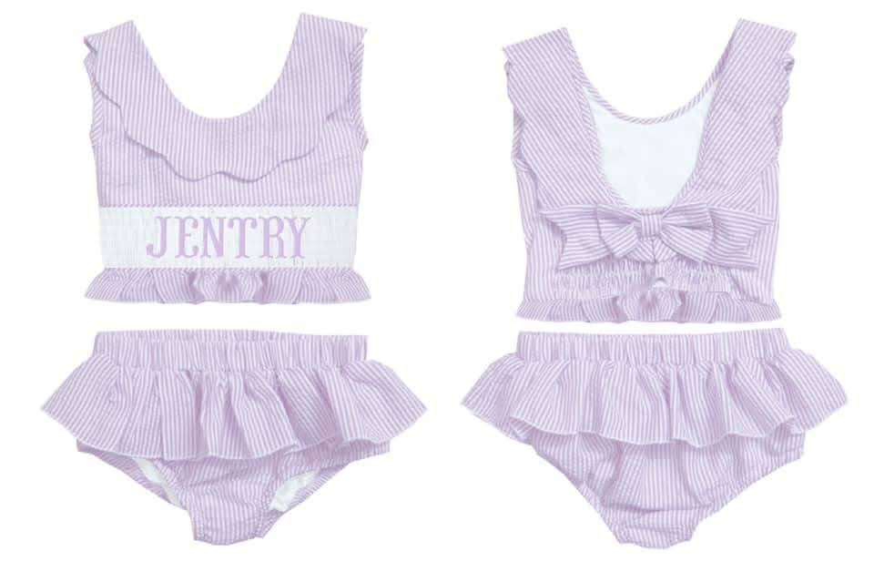 HAND SMOCKED PURPLE SEERSUCKER SWIM PO