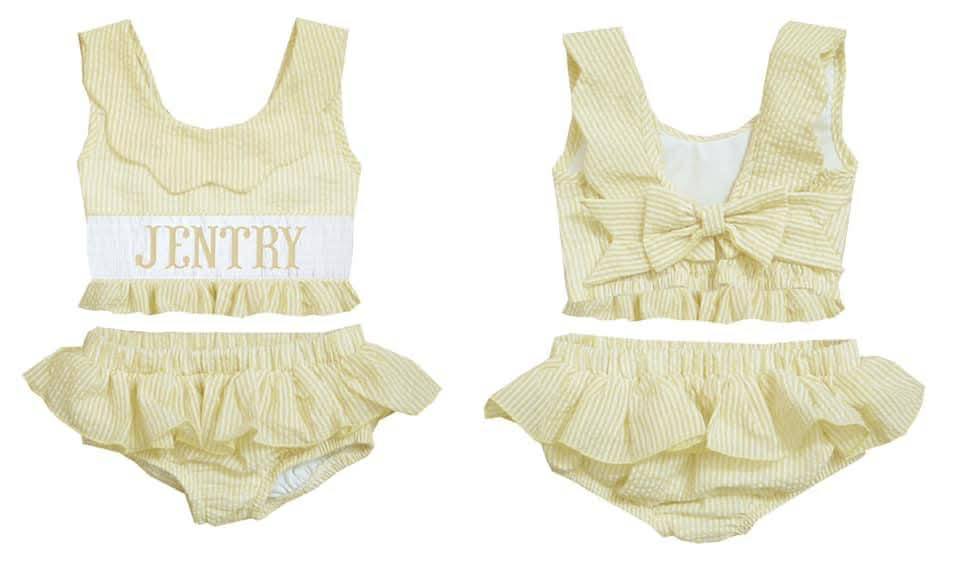 HAND SMOCKED YELLOW SEERSUCKER SWIM PO