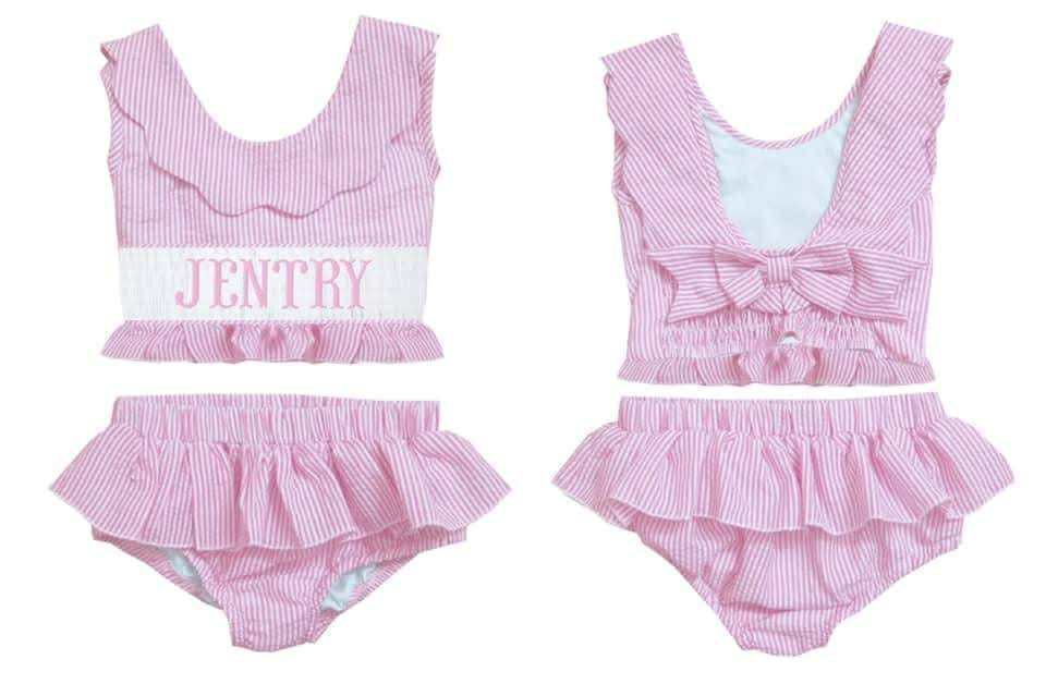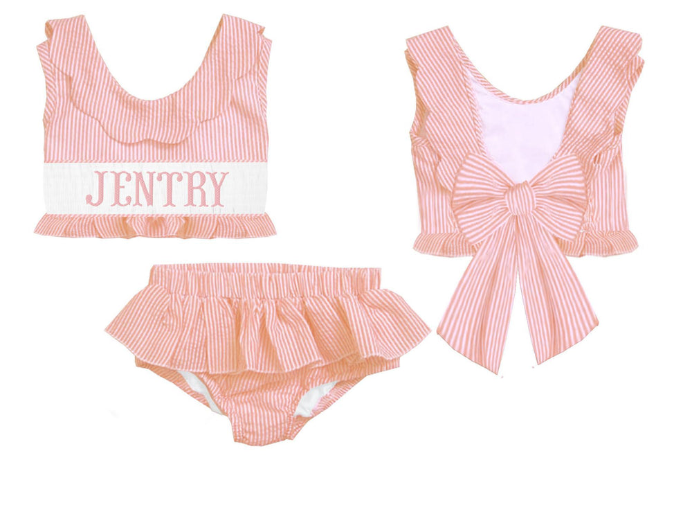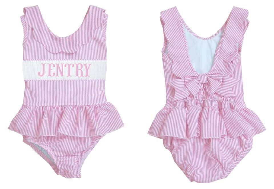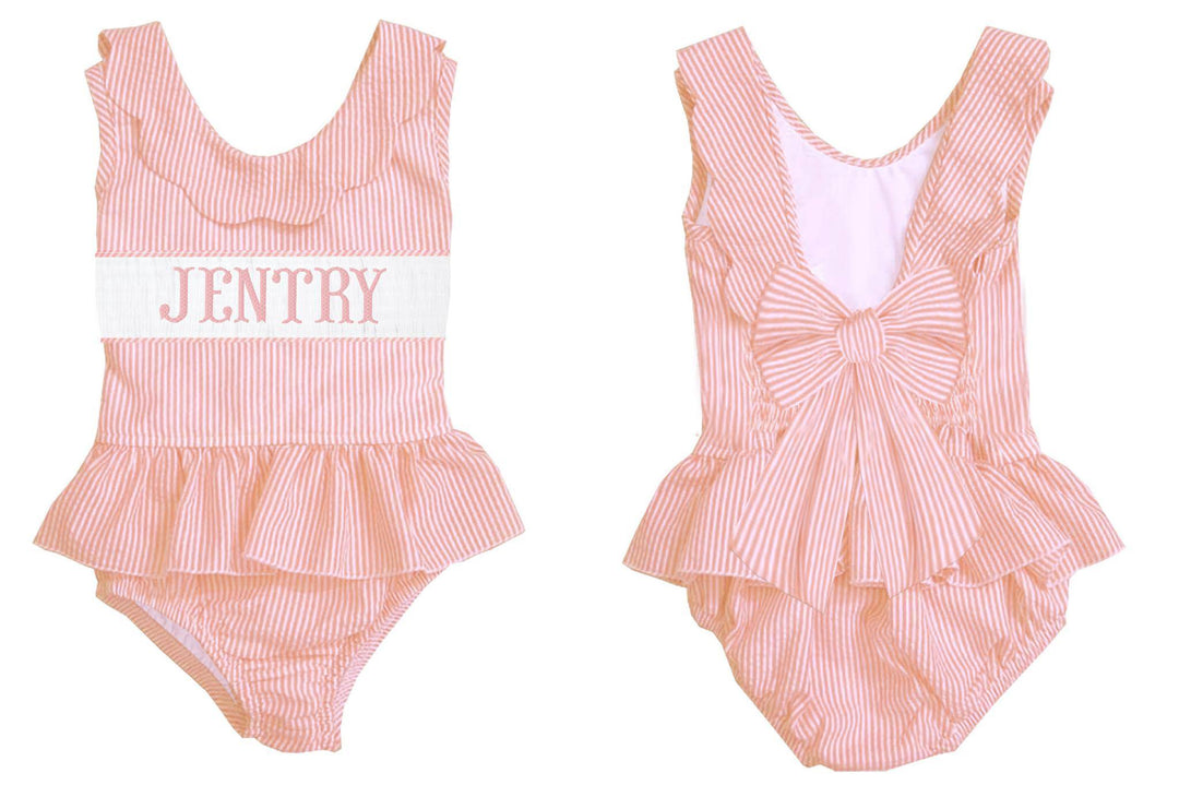 HAND SMOCKED PINK SEERSUCKER SWIM PO