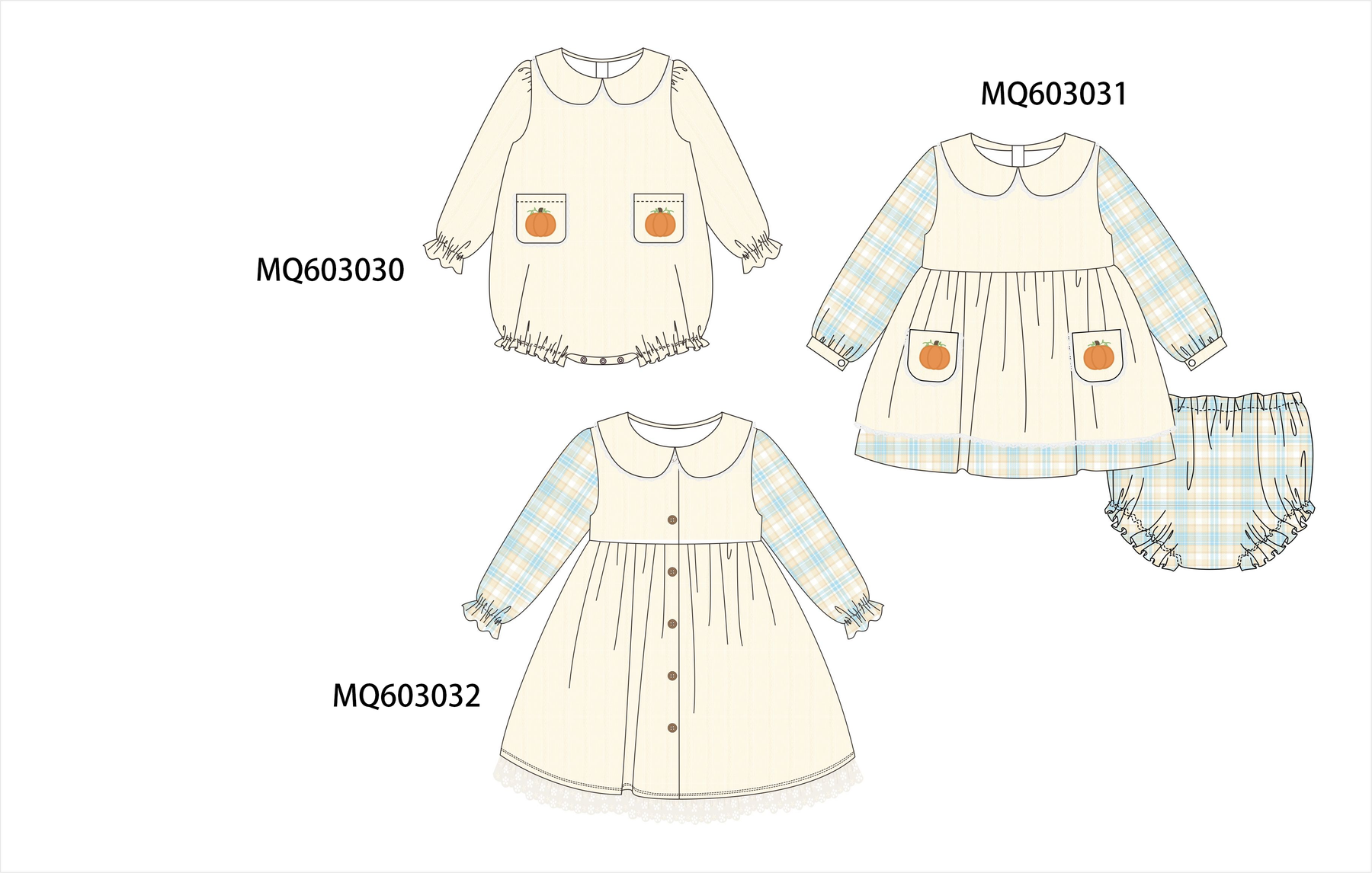 PO84 Beige pumpkin embroidery plaid collection